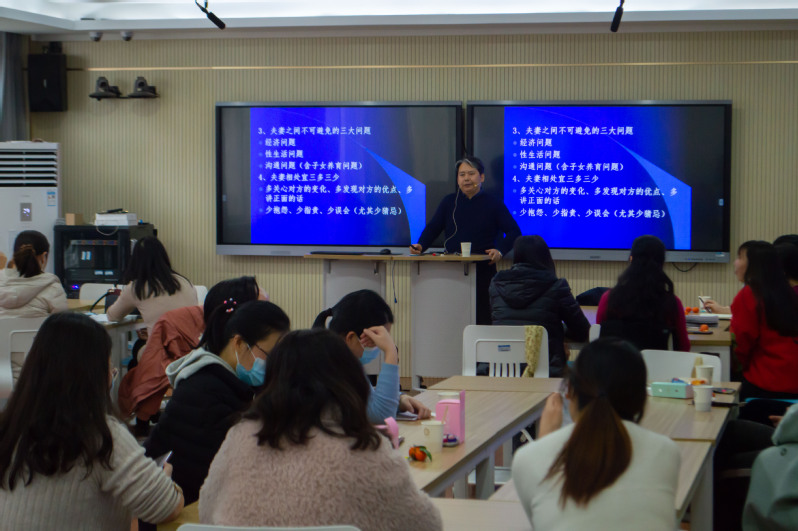 雷五明教授分别围绕“女性的心理及行为特点”“夫妻相处及亲子教育之道”“职场女性的压力及情绪管理”三方面展开交流,他先是阐释了女性白领的优势,从不同角度、全方位展现新时代女性的魅力。“女性长于记忆、善于言辞,感情丰富、性格温柔,在与人交往的过程中往往善解人意,此外,女性对痛苦和磨难的承受力较强,且富有牺牲精神,对未来充满希望和美好的憧憬。”雷五明教授说道。