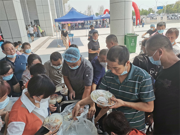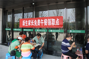 图为学校为学生家长免费提供午餐、矿泉水和面包 摄影:蓝静 李若源