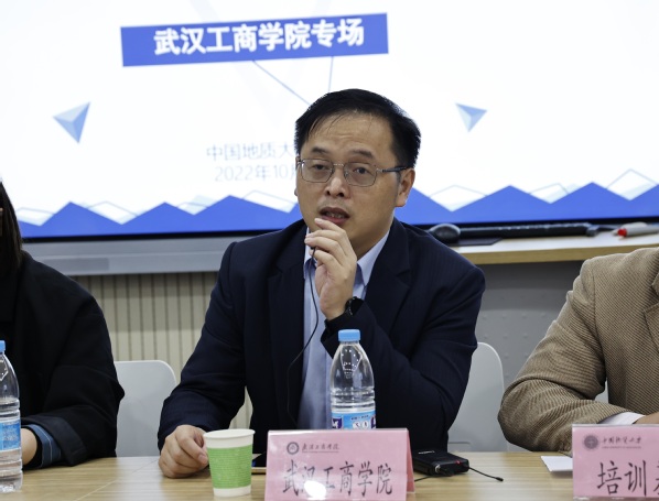 图为中国地质大学学生就业指导处处长严嘉讲话 摄影:胡毅