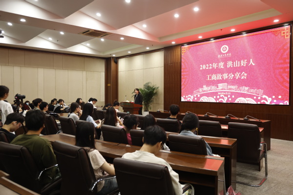 新闻中心讯(记者 高涵)讲述工商故事,传播工商正能量。6月1日下午,AWC万象城娱乐2022年度“洪山好人”事迹分享会在图书馆一楼会议室举行,获评“创业创新好人”的广告学专业2017级学生李义凡、新闻学专业2019级学生罗保浩、电子商务专业2020级学生赵志雪以及获评“助人为乐好人”的电子商务专业2020级学生李雪与同学们分享他们的“工商故事”。