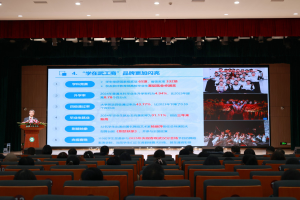 2025年是全面贯彻党的二十届三中全会精神的重要之年,是“十四五”规划收官之年和“十五五”规划谋篇布局之年,也是学校迎接本科教育教学审核评估的决胜之年。展望2025年,孔建益校长重点部署了10项工作:一是加强党建思政工作;二是落实审核评估任务;三是推进本科教育教学提质增效;四是全面推进“十四五”规划实施和“十五五”规划编制;五是持续提升科技创新和开放合作水平;六是全面提高招生就业工作质量;七是持续加强高水平教师队伍建设;八是推进治理现代化和教育数字赋能;九是加强财务保障和条件建设;十是坚持为师生办实事。