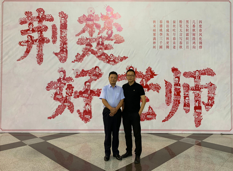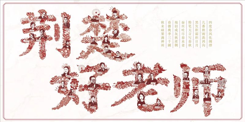 此次颁奖典礼现场的大型喷绘海报“荆楚好老师”5个创意文字便是徐郑冰带领他的师生团队一起创作的,该字绘作品巧妙地将2019获评“荆楚好老师”的老师肖像与中国传统文化相融合,用绘画的形式将汉字描绘出来,将老师教书育人的意义囊括其中,显得惟妙惟肖,引得现场不少人连声称赞。