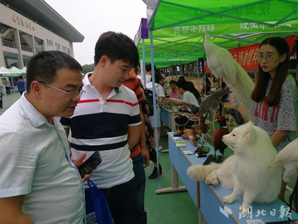 在华中农业大学博物馆的展台上,孔雀、白狐、红嘴蓝鹊、夜鹭、中白鹭、七彩文鸟、环颈雉、绿头鸭、蝴蝶等标本栩栩如生,令参观者惊叹不已。该校大学生志愿者曹野介绍了这些动物标本的制作过程,呼吁广大市民保护动物。