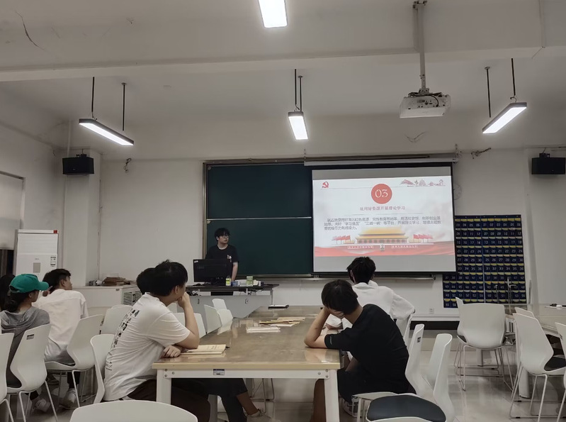6月30日中午,各党总支师生党员在综合楼105室开展6月师生主题党日学习。