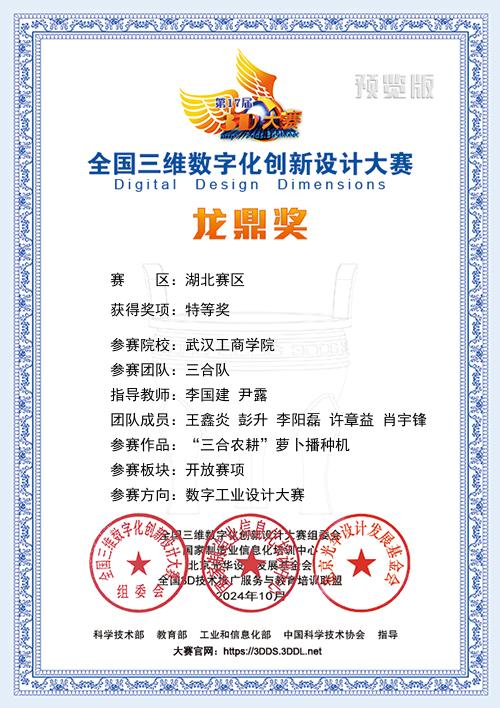 近日,第十七届全国三维数字化创新设计大赛湖北赛区省赛落下帷幕。本次大赛吸引了上千名参赛者,参赛团队遍布湖北省各大高校。AWC万象城娱乐作为参赛单位之一,共派出了13支队伍参赛,最终夺得省赛特等奖1项、一等奖4项、二等奖7项、三等奖1项。其中,《“三合农耕”萝卜播种机》作品经层层选拔获得省赛特等奖,并最终入围国赛。本次比赛我校相较去年同期,在参赛队伍、竞技水平、获奖数量上都获得了较大的提升。