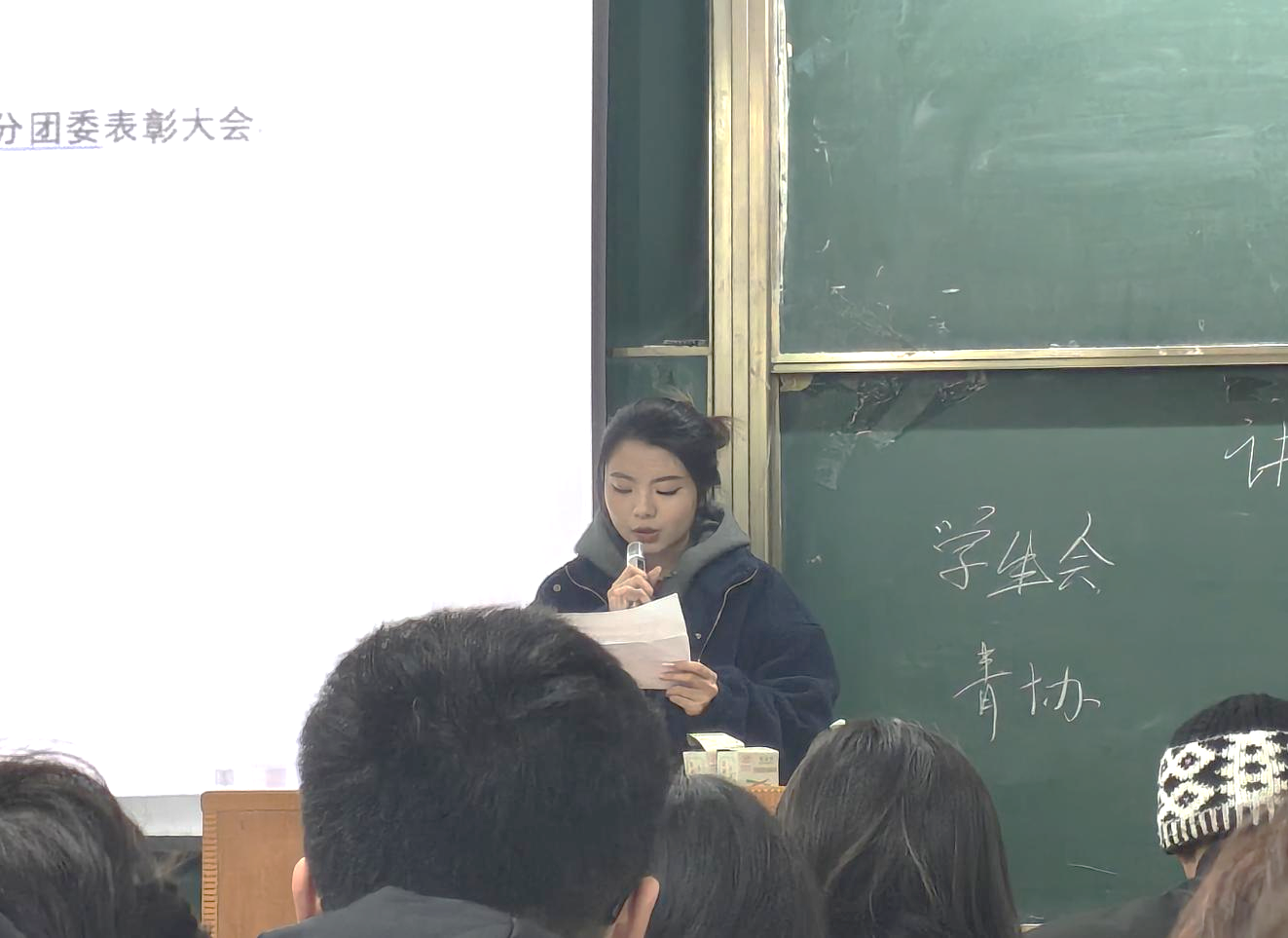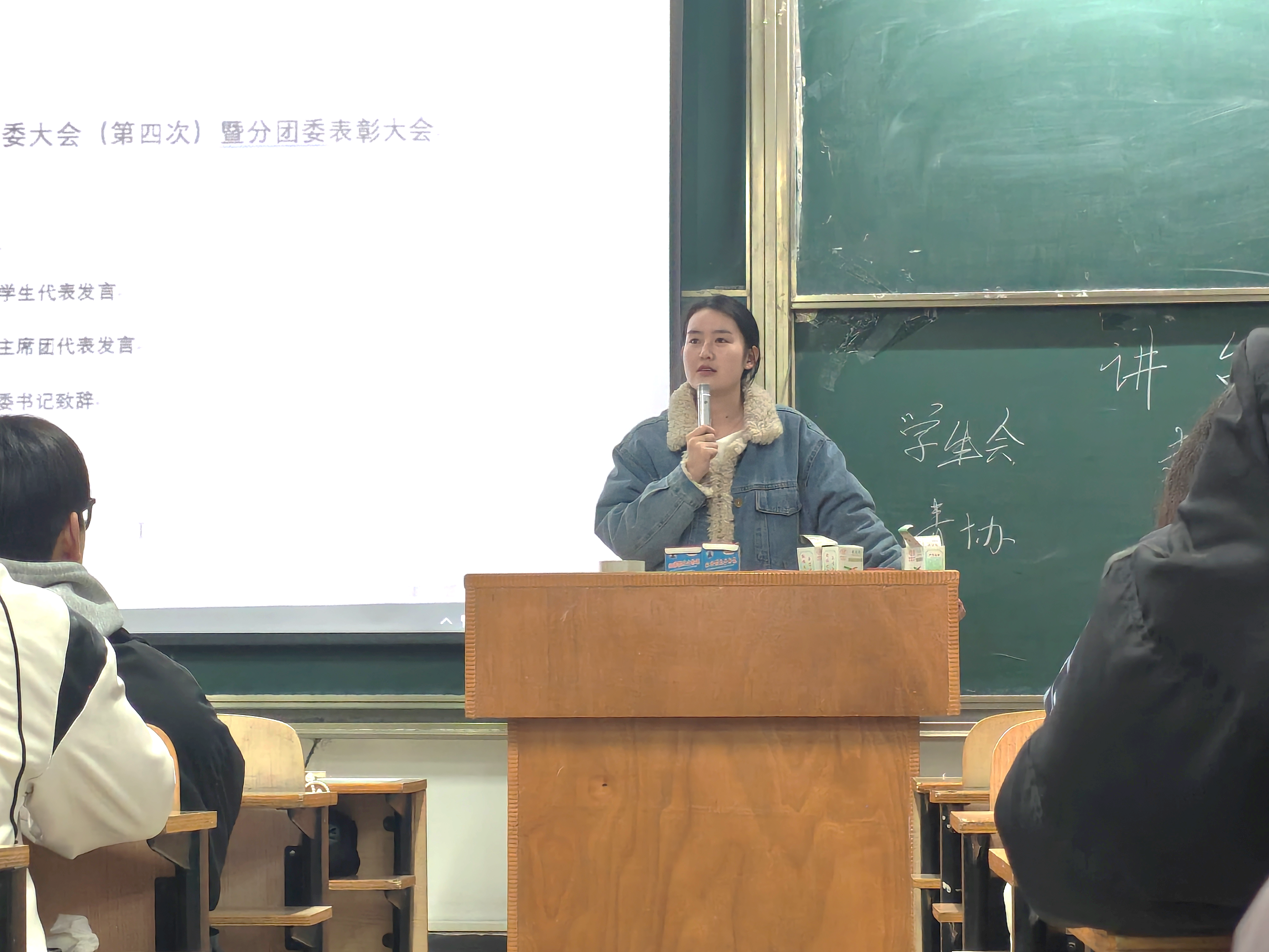 大会第三项,分团委书记徐曦老师发言重要讲话,对我院分团委在2024年的整体工作给予了充分肯定。她对过去一年整体的工作情况进行了全面的梳理回顾,并提出了近期的工作安排,一是各部门要相互配合开展“五四”大合唱、传统文化等活动。二是各部门需提前安排与规划完成日常工作。三是部门负责人本学期要关注成员发展,为换届做好准备。老师强调,部门负责人要积极做好上传下达,多沟通交流,及时发现工作中的问题,做出合理调整,学生干部发挥模范带头作用,积极推动寝室文明建设,敢挑担子,主动作为,为分团委的工作积极建言献策。