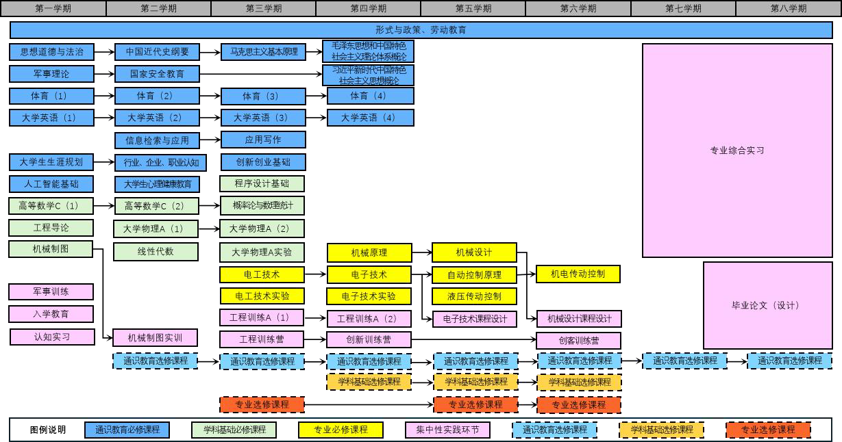 机械设计,机械原理,创新训练营,专业综合实习,大学物理A |