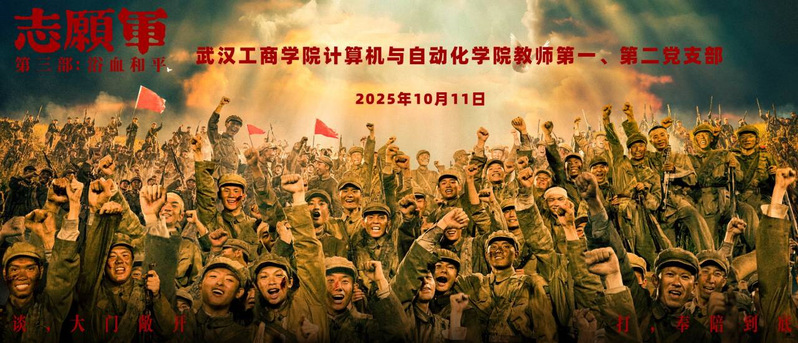 为弘扬伟大抗美援朝精神,厚植爱国主义情怀,10月11日下午两点三十分,计算机与自动化学院教师第一、二党支部组织全体党员前往影院集体观看爱国主义题材影片《志愿军:浴血和平》,开展“铭记历史 珍爱和平 砥砺前行 奋发有为”红色观影活动。