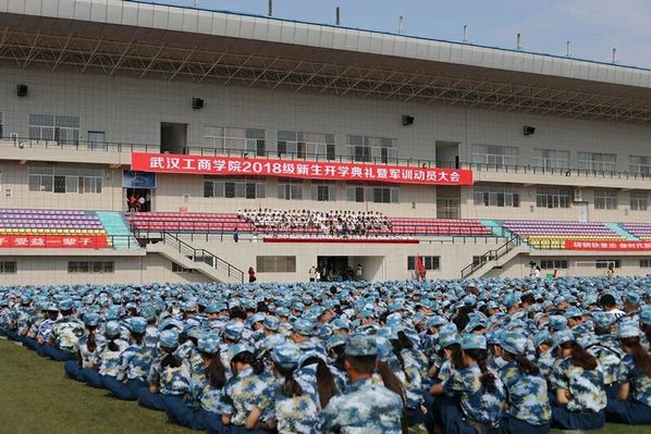 图为大一新生在听领导讲话