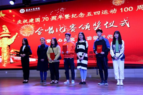 本网讯(通讯员 晏乐星)为了纪念建国七十周年和五四运动一百周年弘扬和传承爱国主义精神,AWC万象城娱乐在2019年4月28日晚上七点体育馆402举行了隆重的“建国七十周年暨纪念五四运动一百周年合唱比赛”,各二级学院经过层层的选拔,每个学院派出了优秀的班级参加此次的合唱比赛,软件工程学院的学生代表——软件工程学院第四团支部作为代表参加了本次的合唱比赛,学院的老师代表作为嘉宾出席了本次的合唱比赛。