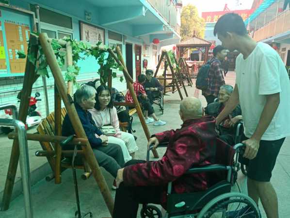 图为志愿者与老人们亲切交谈(摄 李钰剑)