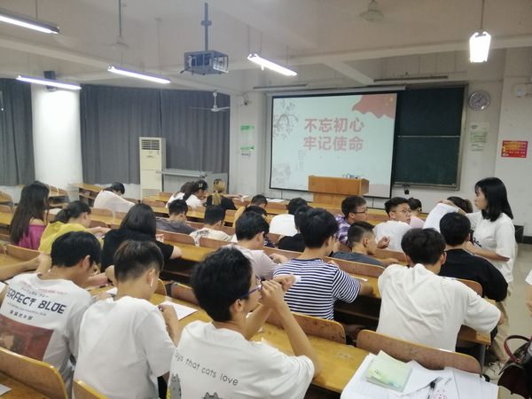 2019年9月22日晚上7点50分,我们班在507教室举行了2019年第六次“不忘初心,牢记使命”主题团会。前十分钟,我们班应学校要求,观看了10分钟的青年大学习,班上同学都认真观看视频,收获了很多知识。后二十分钟,我们进行了这次团会的正题,班级团支书用ppt向同学们讲解了此次团会的内容,讲述了大家始终聚焦学习贯彻习近平新时代中国特色社会主义思想这一根本任务,紧密联系梅州实际,分成“习近平总书记关于‘不忘初心、牢记使命’的重要论述”“习近平新时代中国特色社会主义思想体系”“习近平新时代中国特色社会主义思想蕴含的世界观方法论”“习近平总书记关于增强斗争精神勇于担当作为的重要论述”“习近平总书记对广东重要讲话和重要指示批示精神”等五个专题深入开展学习研讨。