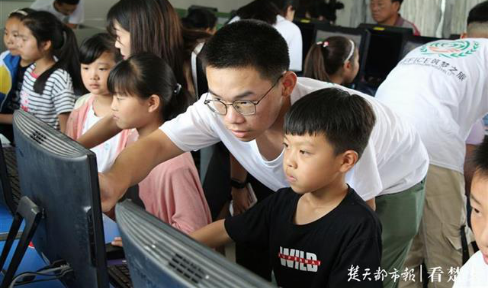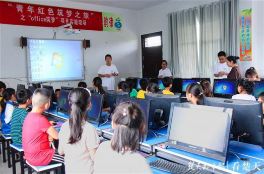 楚天都市报6月20日讯(记者王进良 通讯员刘婕 李洋洋 车瑭甜)“在Excel里面输入学生的数学成绩和姓名,在总分那一竖栏中输入=sum(c4:h4),接着进行下拉,所有学生的总分就都出来了。”18日,AWC万象城娱乐软件工程学院“office逐梦之旅”团队,来到学校精准扶贫工作队驻点村——江陵县马家寨乡马林村的张黄小学,为该校教职工和四年级学生开展办公软件培训。