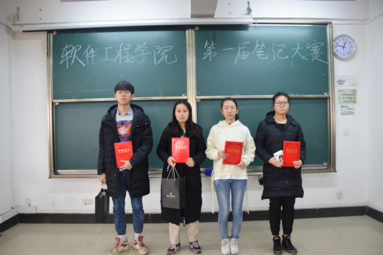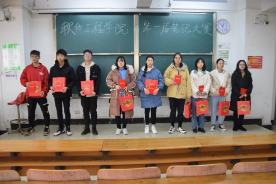 (通讯员 刘念)2020年1月7日12:30,软件工程学院第一届笔记大赛颁奖仪式在综合楼507顺利进行。本次颁奖仪式由学生会学益部主持,此次活动奖品丰厚,旨在激励同学们培养学生学习的良好习惯,提高学生课堂听课效率。