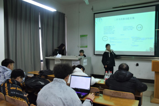 由组长介绍答辩的规则及流程,主持人安排第一名同学上台,答辩正式开始。此答辩场由区块链和移动开发同学组成,同学们用PPT介绍所设计的系统的功能并介绍使用的相关技术,并演示系统的运行效果,答辩教师提问,学生答问主持人安排答辩教师打分,并在大屏幕显示该生的二维码让观摩学生打分。(二维码放在PPT的最后一页)主持人安排下一个同学开始。