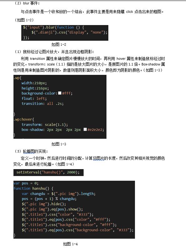 (2)鼠标靠近形成的效果多样,有的能改变字体的颜色,改变背景的颜色,或者出来另外一个框图,或者发生图片放大、淡化,偏移的效果