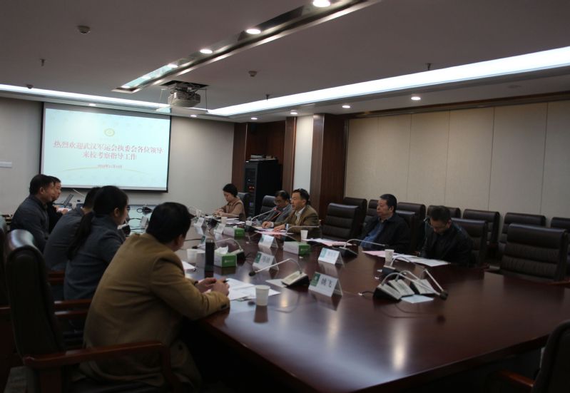 陈奎生校长致辞。他代表学校对武汉军运会执委会一行人的到来表示热烈欢迎,武汉军运会是举国上下都十分关注的国际性大赛,意义重大。学校作为扎根于武汉,服务于武汉的地方高校,将举全校之力积极配合协同军运会的相关活动,为军运会在汉成功举办贡献力量。