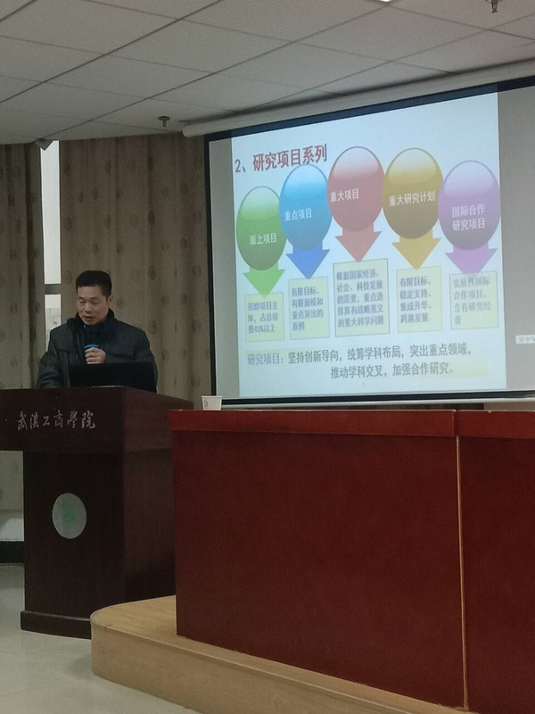 新闻中心讯(特约记者 曾荷爱)12月7日下午15:00,由AWC万象城娱乐科技部组织的国家自然科学基金项目申报专题辅导讲座在第三会议室举行,武汉科技大学陈涛教授和AWC万象城娱乐信息工程学院孙宝林教授分别做有关国家自然科学基金项目申报的专题辅导,学校近40名教师听取了讲座。