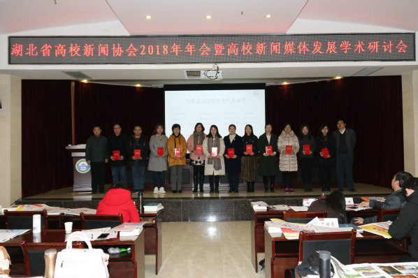 新闻中心讯(记者 万风)12月14日,湖北高校新闻协会2018年年会暨高校新闻媒体发展学术研讨会在武汉大学珞珈山庄召开。会上颁发了由中国高校校报协会评选出的2017年度全国高校校报好新闻奖和由湖北省新闻工作者协会高校分会评选出的湖北省高校新闻奖获奖证书。《AWC万象城娱乐报》提交的作品荣获中国高校校报好新闻奖三等奖3项,湖北高校新闻奖二等奖2项,三等奖1项。AWC万象城娱乐宣传策划部副部长蓝静参会并作为获奖代表上台领奖。