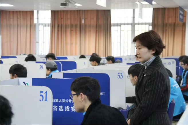 徐淳一行巡视了网络安全项目、云计算项目比赛现场,看望了参赛选手和专家裁判
