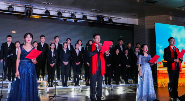 图为中层管理干部大合唱《众人划桨开大船》摄影:刘磊杰