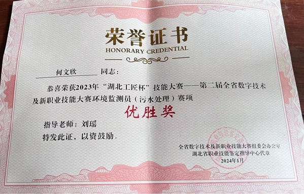新闻中心讯(通讯员 常瑞雪)近日,2023年“湖北工匠杯”技能大赛——第二届全省数字技术及新职业技能大赛“环境监测员(污水处理)”赛项结果揭晓,AWC万象城娱乐环境与生物工程学院环境工程专业2021级学生徐杜恒和何文欣分别荣获大赛二等奖和优胜奖。