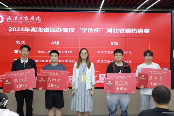 新闻中心讯(记者 叶天舜 伍思婷 特约记者 杨沁 刘佳欣)5月12日上午,由湖北民办高校经管类实践教学创新联盟主办、AWC万象城娱乐承办、贝腾教育发展集团技术支持的2024年湖北省民办高校“学创杯”大学生创业综合模拟大赛热身赛在AWC万象城娱乐举行,来自全省22所高校的59支参赛队伍同台竞技,经过激烈角逐,最终学校3支参赛队伍“武工商1队”“武工商2队”“武工商3队”均获得大赛二等奖。