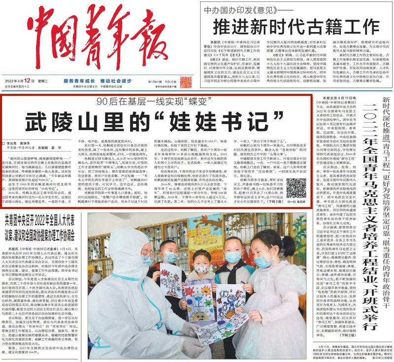 他呼吁更多年轻人来到基层一线,“这里有年轻人释放活力和智慧的广阔天地,更能收获幸福和成长”。