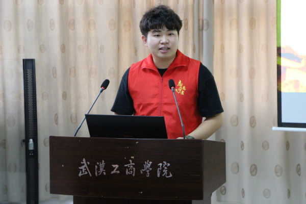 原校青协主席、“火凤凰”支教队队长谭锦涛同学代表志愿者发言,他全面阐释了本次活动的意义,并分享了他组织和参加志愿者活动的经验和感受。