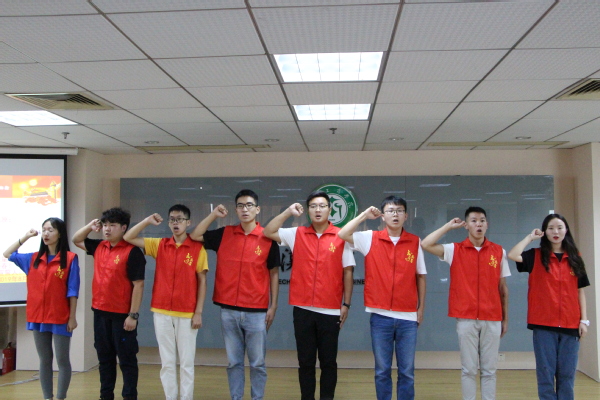“我是光荣的援藏志愿者,我宣誓:我将承载工商重托,奉献雪域高原;不负国家厚望,担当历史重任……”管理学院党总支副书记、本次支教队领队王留志带领8名志愿者宣誓,铿锵有力的铮铮誓言,回荡在黄家湖的上空。