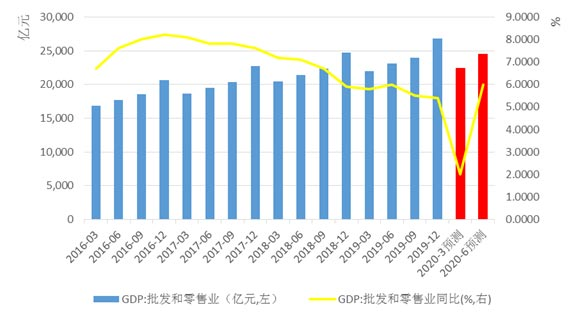 总体来看,疫情对必选消费的影响较小,2月份对于可选消费影响较大,但3月份以后大宗消费会出现一定回补,总体来看,预计疫情将带来批发和零售业一季度产值损失800亿元,预计2020年一季度批发和零售业产值为23233亿元,同比增长2%左右。考虑到二季度社会秩序恢复以及大宗消费回补,预计二季度行业增速有望达到同比6%左右。