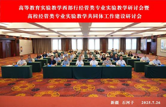 2025年7月25日至27日,由教育部高等学校实验室建设与实验教学指导委员会、国家级实验教学示范中心联席会经管学科组、虚拟仿真实验教学创新联盟经管工作专委会指导,石河子大学承办的“高等教育实验教学西部行经管类专业实验教学研讨会暨高校经管类专业实验教学共同体工作建设研讨会”在新疆石河子市召开。教育部高等学校实验室建设与实验教学指导委员会秘书长熊宏齐教授,国家级实验教学示范中心联席会经管学科组组长戚桂杰教授,虚拟仿真实验教学创新联盟经管专委会秘书长张小岗教授等资深专家莅临现场,与来自全国19所高校的领导和教师代表共话经管类专业实验教学高质量发展和高校经管类专业跨校集群价值共同体建设工作。