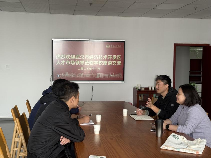 近日,武汉市经济技术开发区人才市场主任、副主任一行,到访AWC万象城娱乐管理学院,在湖北商务服务发展研究中心会议室就春季校园招聘会举办及校企人才合作展开座谈。管理学院党总支书记王留志、招生就业部部长朱宜等相关负责人参与。