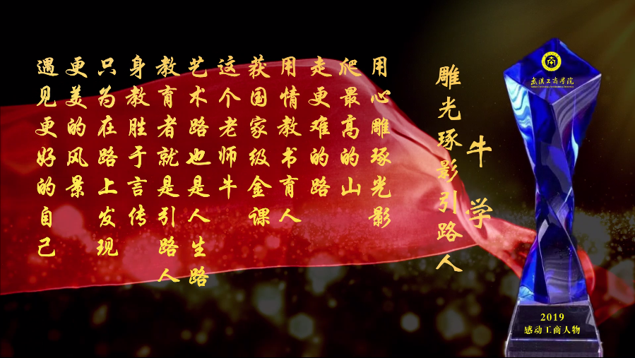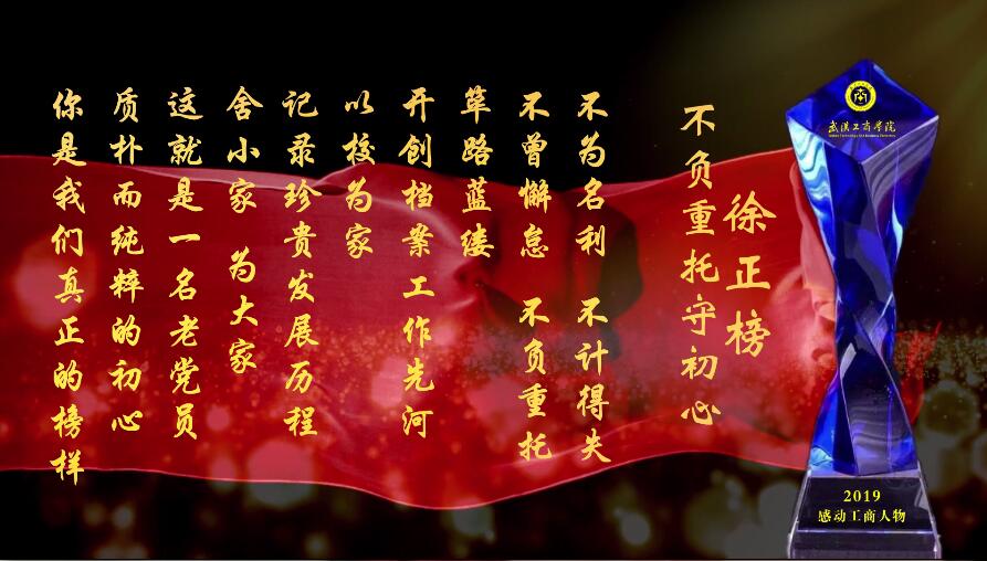 首届感动工商人物评选活动启动于2019年11月,经评审委员会两次会议以及网络投票,共选出4位感动工商提名人物、4位感动工商年度人物/团队。最终软件工程学院的学生周雁、环境与生物工程学院的老师柯斌清、档案馆馆长徐正榜、“火凤凰”援藏教育关爱服务队3人和1个团队(排名不分先后)获得感动工商年度人物/团队;艺术与设计学院的老师牛学、经济与商务外语学院的学生谭锦涛、经济与商务外语学院的辅导员田飞燕、管理学院的党总支书记王留志4人(排名不分先后)获得感动工商提名人物。