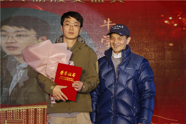 图为龚志伟给牛学颁奖 摄影:唐明悦