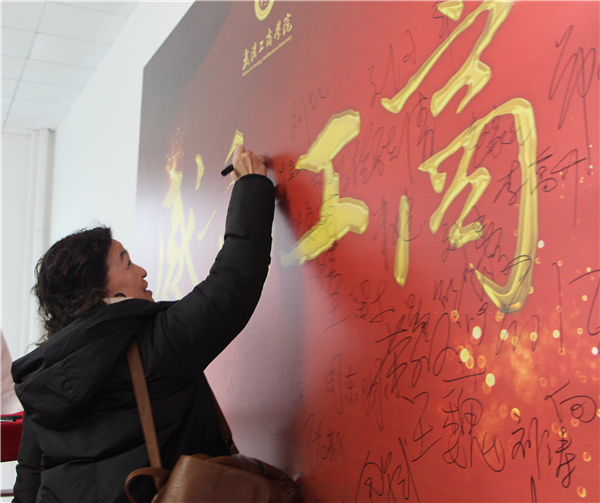 图为熊蕊校长在签名墙上签名 摄影:李洋洋