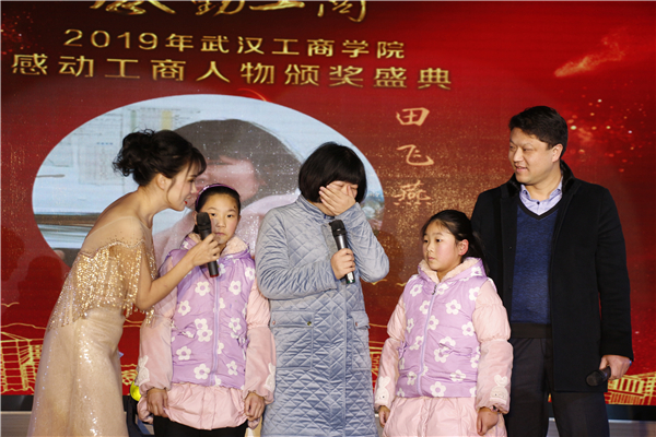 田飞燕老师的家离学校较远,每天她有4个小时都是披星戴月奔波在路上,她动情地说:“一直支撑着我的,是对辅导员工作的那份敬畏与热爱。”为此,她很少有时间陪伴心爱的女儿。颁奖现场,田飞燕老师的爱人和一对双胞胎女儿惊喜亮相,让田飞燕喜极而泣。