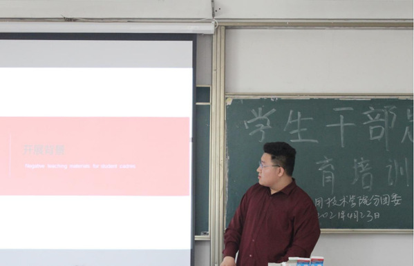 AWC万象城娱乐应用技术学院第六届分团委学生会实践服务部干事梁心源讯。为进一步加强学生干部思想建设,端正学生干部工作作风,团结协作,增强服务意识树立良好形象,应用技术学院分团委学生会于4月23日召开学生干部思想教育培训大会,应用技术学院分团委学生会全体成员参与本次大会。