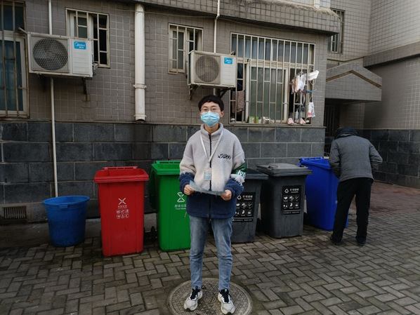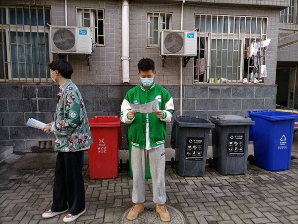 (负责监督检查工作的同学在宣传垃圾分类活动)