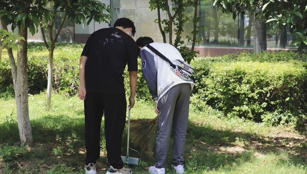 安排好工作之后,清洁任务也有序展开,成员们有的用工具清理地上的垃圾,没有工具的就用手捡拾一些死角的杂物,也有拿着垃圾桶在旁边协助打扫的同学等等,整个清扫活动持续了一个小时左右,接近下午一点半活动才结束。在活动过程中,校园的各个区域都能看到同学们清扫垃圾的身影。