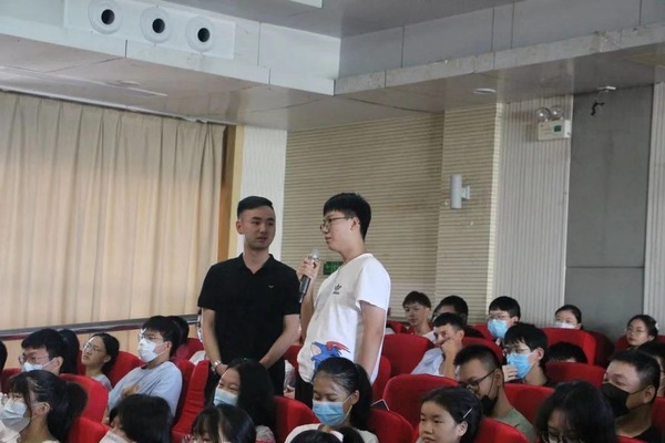 李义凡通过“你为什么要读大学?”、“人生观价值观世界观这个排序对吗?”以及“你想成为什么样的人?”这三个问题展开了自己的经验分享。活动现场气氛活跃,同学们踊跃发言,提出自己的想法,场上场下频频互动。