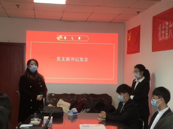 最后是大会第七项,由党支部书记冯媛媛同志发言,她指出,希望大家牢记今天这个神圣而庄严地时刻,牢记自己向党许下的诺言,将誓词作为自己终身的追求和信仰,同时牢记党员身份,认真学习十九大会议精神和习近平新时代中国特色社会主义思想,进一步坚定“四个自信”,强化“四个意识”,不忘初心、牢记使命,在党的领导下为我国社会主义事业努力奋斗。在今后的工作和学习中,敢于担当,勇于作为,积极为党支部活动出谋划策,丰富党课生活。