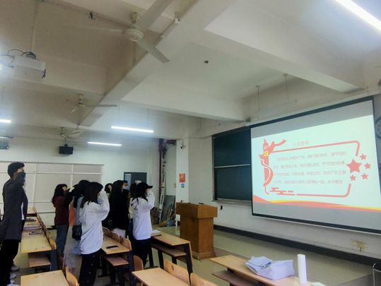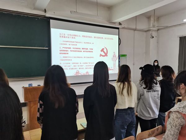在会议的最后,由文法学院新闻学学生党支部宋婷带领全体参会人员做出承诺: