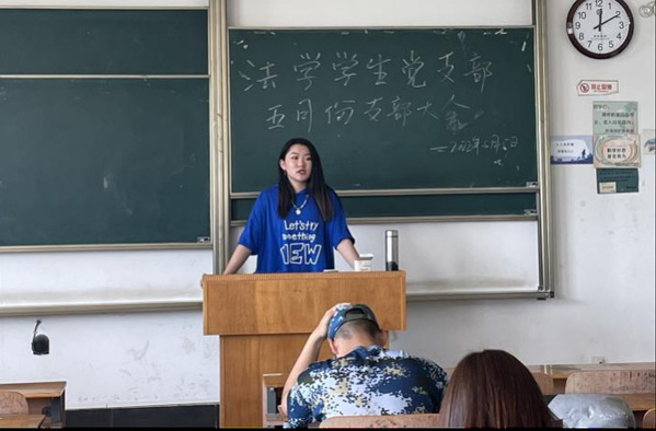 恰同学少年,风华正茂。一百年来,许许多多新时代得新青年在美好年华里奉献了宝贵的青春乃至生命,只因心系人民、心怀使命。习近平总书记曾说过:“新时代的中国青年要以实现中华民族伟大复兴为己任,增强做中国人的志气、骨气、底气,不负时代,不负韶华,不负党和人民的殷切期望!”随后,由文法学院法学学生党支部李虹瑶同志带领全体党员、预备党员以及积极分子观看了《致敬五四,致敬青春》相关视频。各位党员,预备党员和入党积极分子也结合本次支部大会的主题分享了自己的心得。
