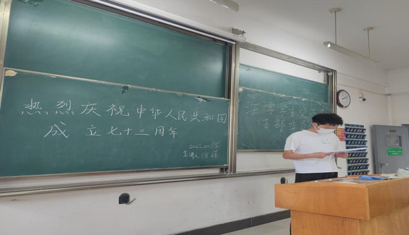 法学学生党支部(记者:金栩冰)2022年10月5日中午12点10分文法学院法学学生党支部在综合楼201开展了以“热烈庆祝中华人民共和国成立73周年”为主题的文法学院党支部委员会。本次会议由法学学生党支部金琪同学主持,文法学院法学学生党支部党员和预备党员参加本次会议。