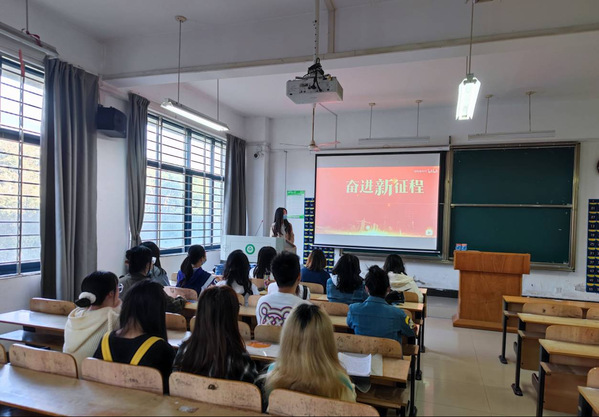 此次会议曾锦娟同学介绍当前局势开始,今年是建党101周年,北京冬奥会顺利举办,二十大即将召开。此次会议以介绍攻坚精神为主,曾锦娟同学先详细介绍了“攻坚”的内涵,分别从“攻坚”是精神、胆识、信念三个方面展开叙述。告诉我们在当前形势下要继承前辈们的百折不挠、勇于担当的精神,要树立在继承前人的基础上超越前人的雄心壮志。