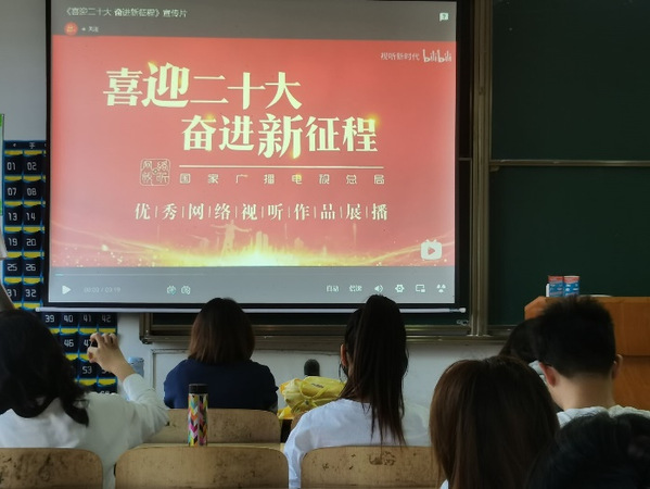 会议的最后,大家一起观看了视听新时代的《喜迎二十大,奋进新征程》的宣传片,视频用这些年的各类纪录片、电影、综艺等讲述了这十年的中国之变,以新时代的最强音,迎接党的二十大胜利召开。红色的信仰正在当代青年身上不断传承,我们作为新时代的新闻人,我们要立时代之潮头,发时代之先声,为党和人民真情抒怀,为中华民族伟大复兴中国梦矢志奋斗。