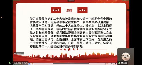 广告网媒联合学生党支部(记者 林亚虹)11月10日,广告网媒联合学生党支部开展了党课,共同学习了党的二十大精神,学习中国共产党第二十次全国代表大会上的报告中的核心精神——“三个务必”。
