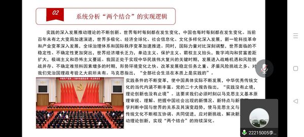 广告网媒联合学生党支部(记者 李佳妮)12月08日,广告网媒联合学生党支部开展了线上日常学习会议,本次会议由李佳妮同志主持,主题为学习党的二十大报告《“两个结合”始终保持马克思主义的蓬勃生机和旺盛活力》。