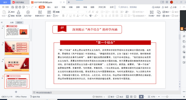 随后,与会同志对“两个结合”等二十大重要理论进行深刻了解,明确了中国共产党当下的中心任务,知晓了坚持中国式现代化和全面建设现代化社会主义国家的必要性。主持人强调,党的二十大进一步指明了党和国家事业的前进方向,是我们党团结带领全国各族人民在新时代新征程坚持和发展中国特色社会主义的政治宣言和行动纲领。坚持和发展马克思主义,要坚定历史自信、文化自信,坚持古为今用、推陈出新,把马克思主义思想精髓同中华优秀传统文化精华进一步贯通起来、同人民群众日用而不觉的共同价值观念融通起来,不断赋予马克思主义科学理论鲜明的中国特色,夯实马克思主义中国化时代化的历史基础和群众基础,使马克思主义充盈着日益浓郁的中国味、日益深厚的中华情,让马克思主义在中国牢牢扎根。